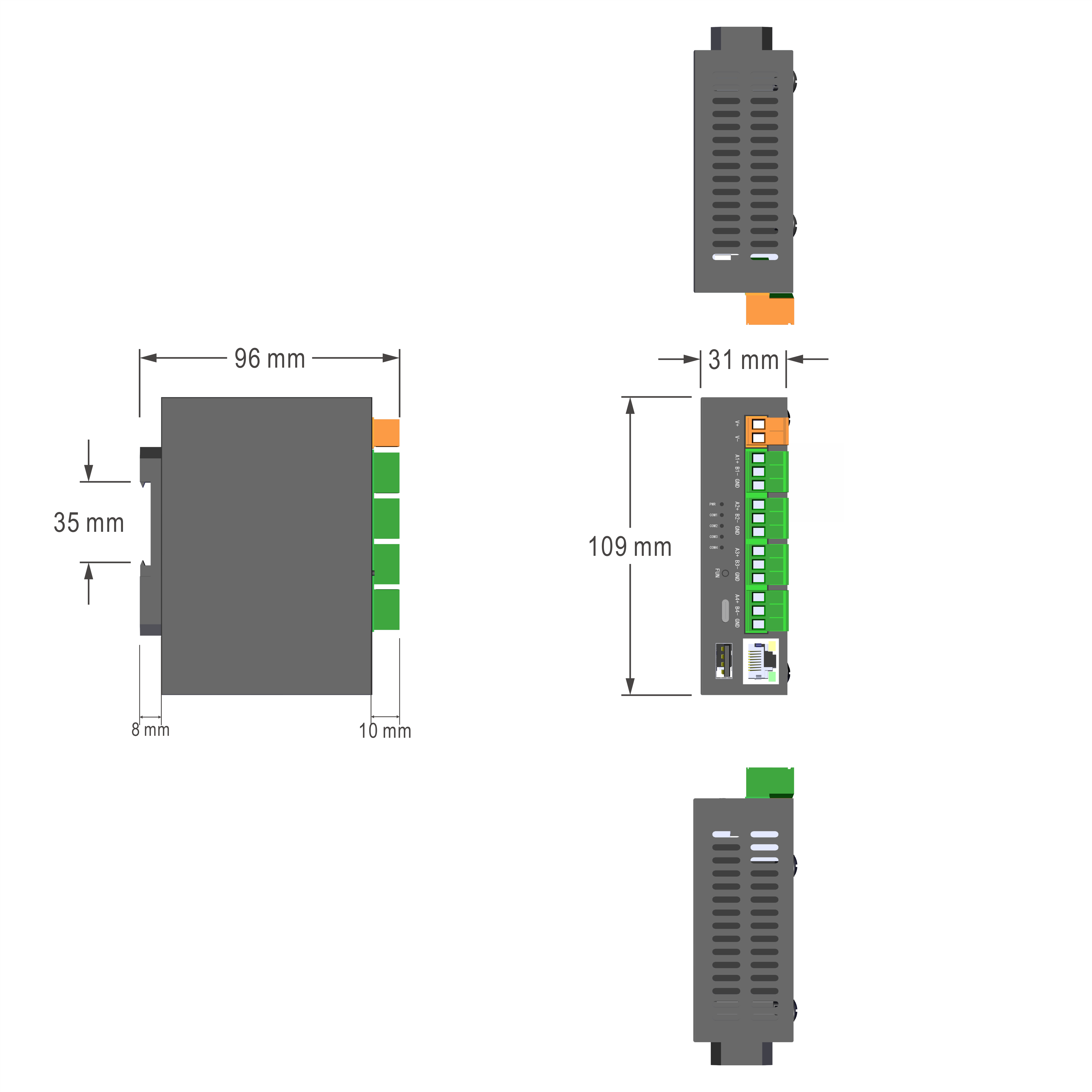 | 接口:2个网口,4个RS485接口 |