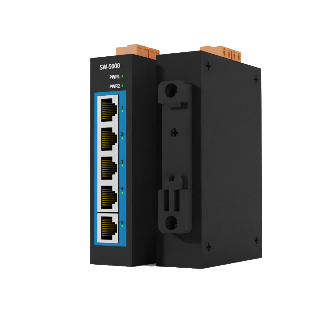 上海迅饶非网关型工业以太网交换机SW5000,也就是5口百兆傻瓜型交换机,做了防雷设计,有室外应用,机壳加上接地线即可。考虑到在楼宇自动化的应用,在电源设计上,支持了交流24V。一般情况下,使用12-24V直流电源。