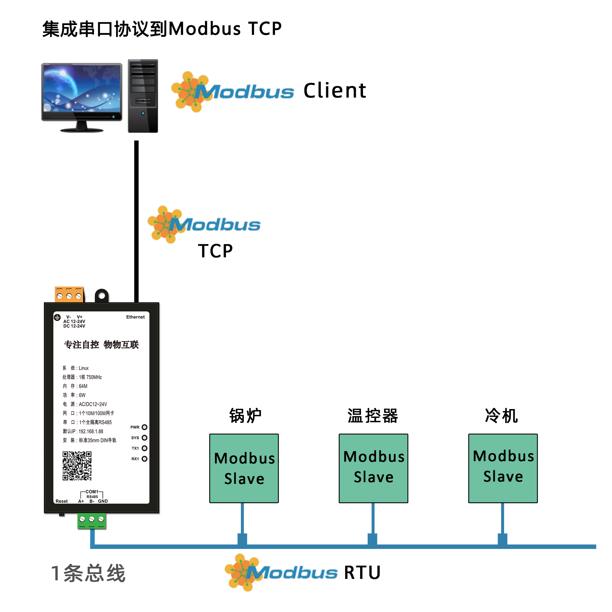 | -仅支持Modbus RTU转为Modbus TCP服务器; |