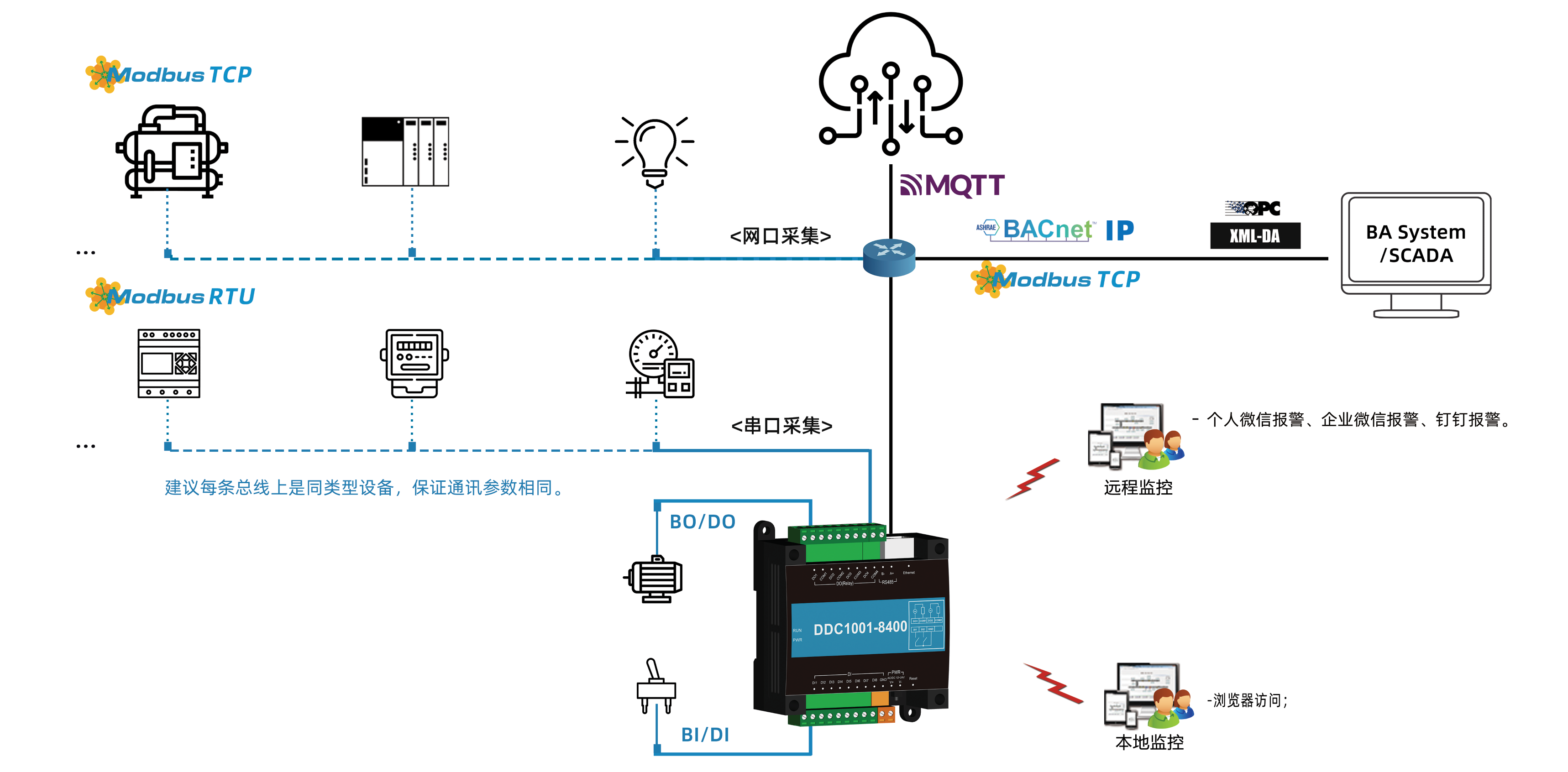 | -支持转发为BACnet IP、Modbus TCP、MQTT服务器(支持迅饶云平台和新奥云平台); |